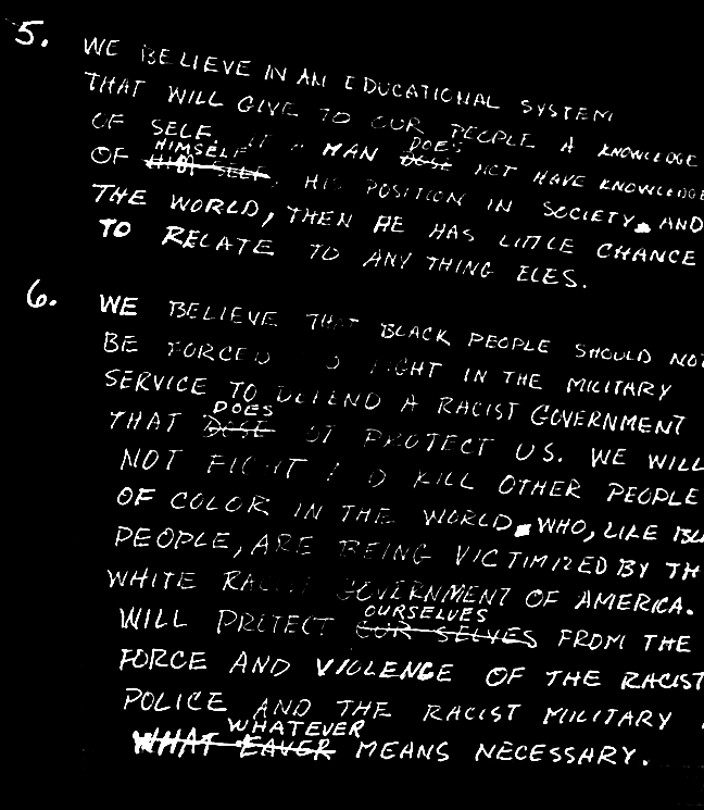 The fifth point of the draft of the Black Panther Party’s original 10 Point Program, written in 1966 by Bobby Seale and Huey Newton (and handwritten by Seale), titled “What We Believe.” Source